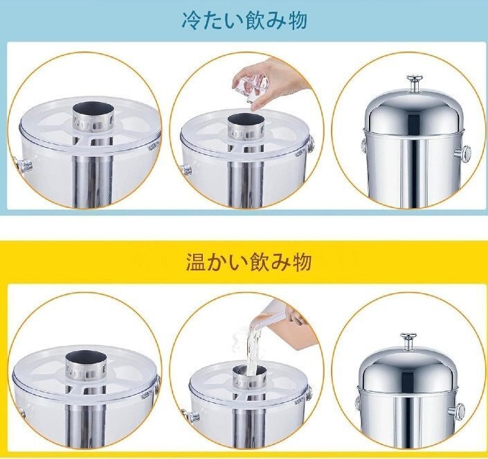【広く使われています】ドリンクディスペンサー パーティー、レストラン、ホテル、ビュッフェ、ジュースを提供する必要があるその他の場所で使用できます。 ジュース、コーヒー、牛乳、コーラ、紅茶、ビールなどの保管に最適です。