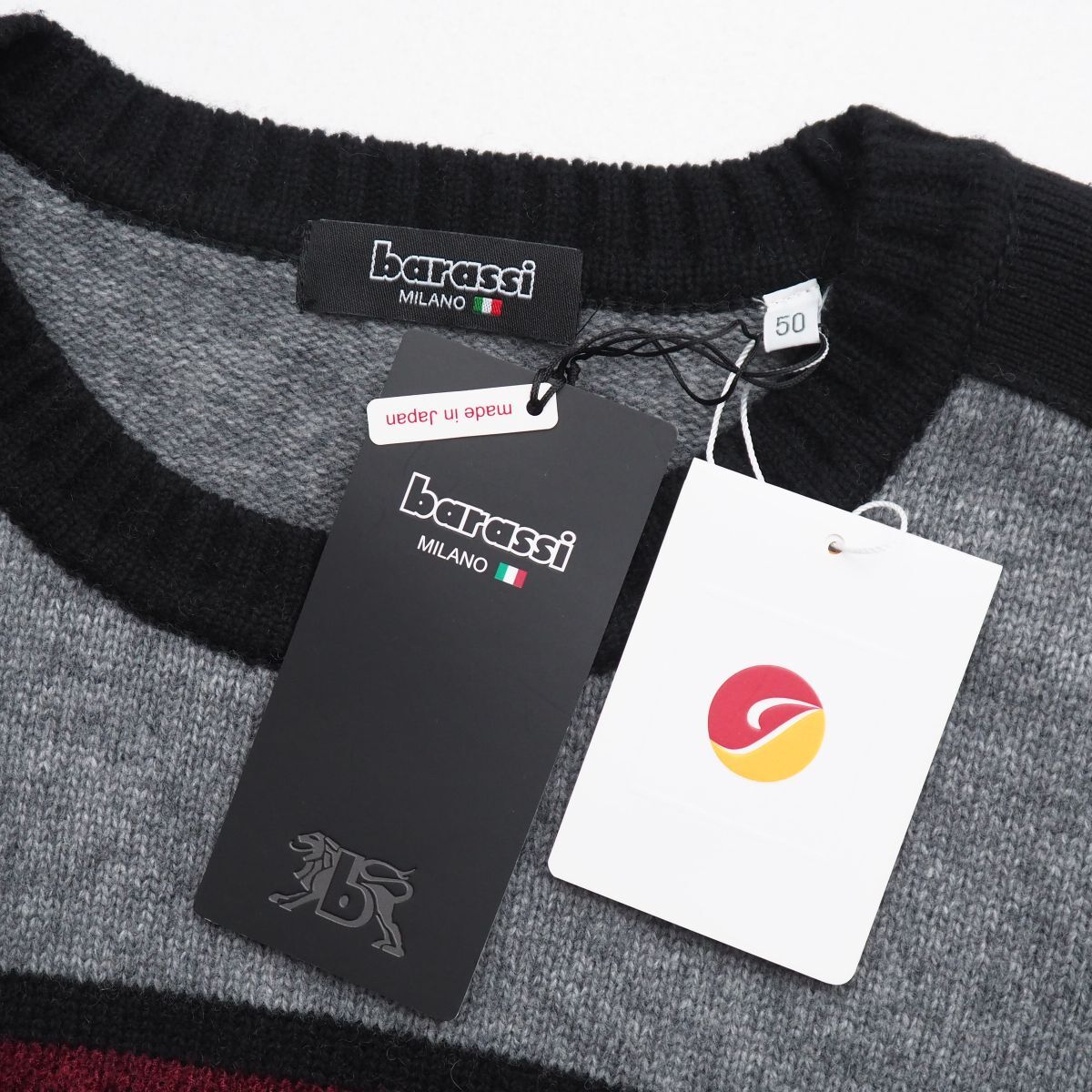 Product name: GS1037▽未使用/定価¥29,000+税*バラシ ミラノ/barassi MILANO*メンズ50*ウール*ボーダー*クルーネック*ニットセーター*グレー×レッド系