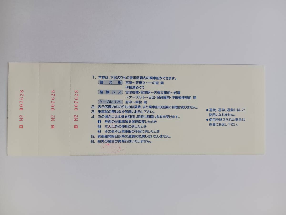 Product name: 天橋立・伊根湾フリー(乗車船券) 丹後海陸交通 使用済み 2009年
