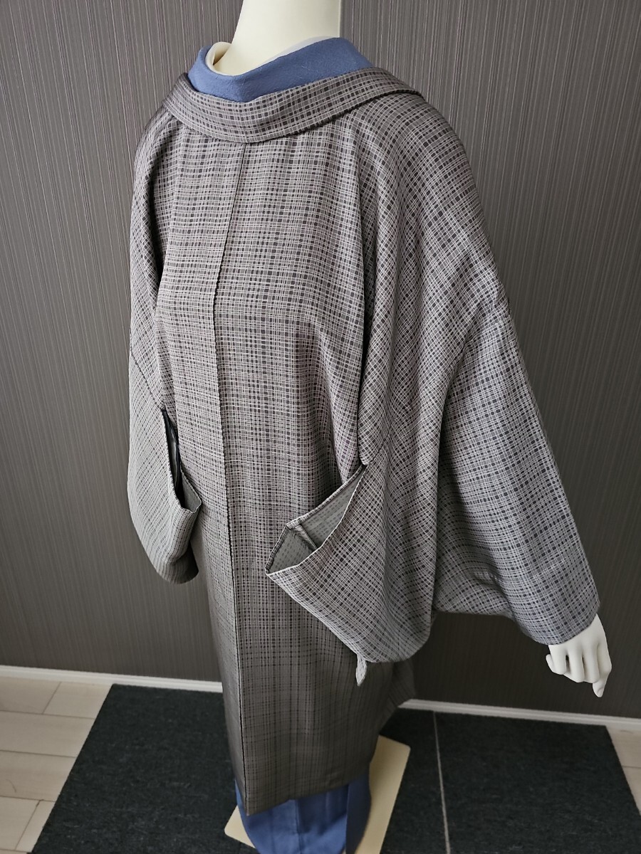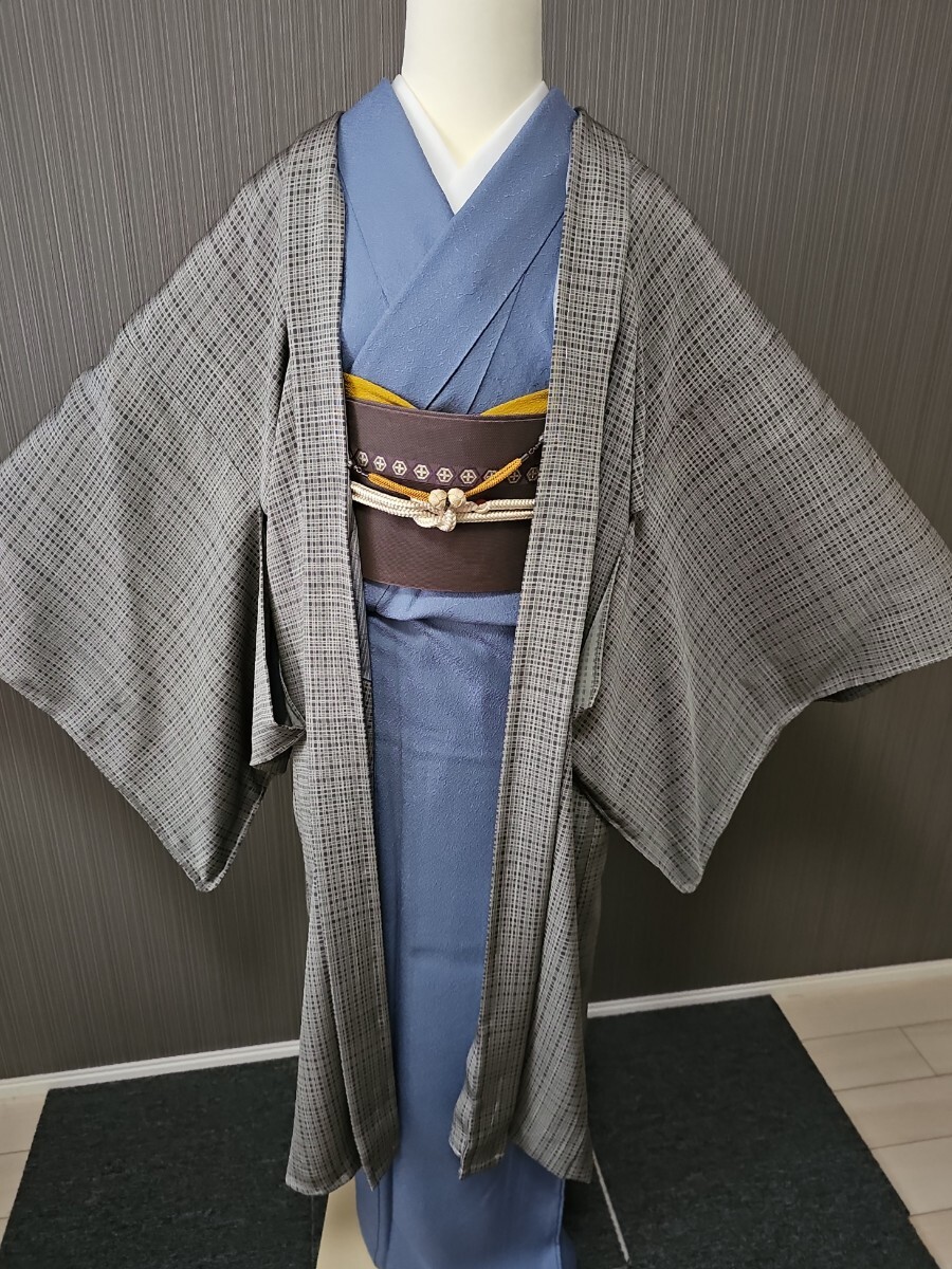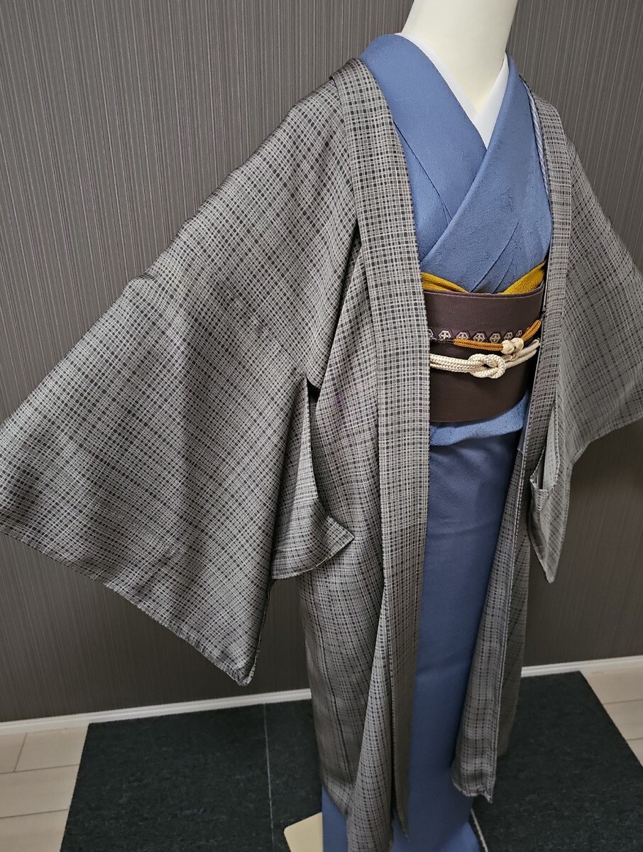 Product name: すずや■263【単衣】未使用正絹丹後ちりめん草木染、東京染長羽織 裄丈70cm  着丈105cm  利休鼠系