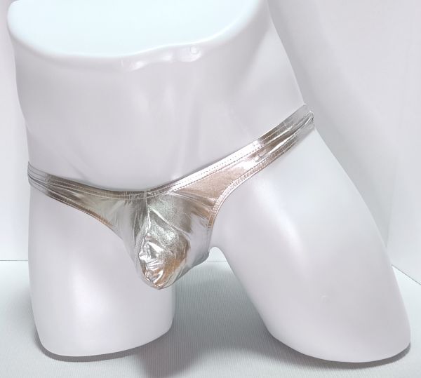 Product name: [KAIXUAN] メンズ フルシーム ローライズ バルジ PU メタリック Tバック ビキニ シルバー 日本M~Lサイズ(タグ表記L)
