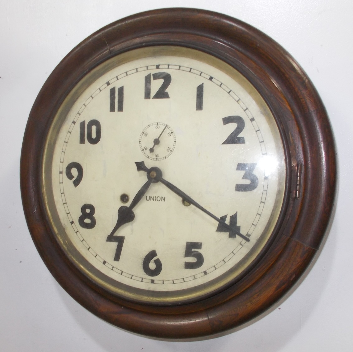★古い昔のスモールセコンド付き丸時計★UNION★薇鍵巻振り子式★稼働品★アンティーク
