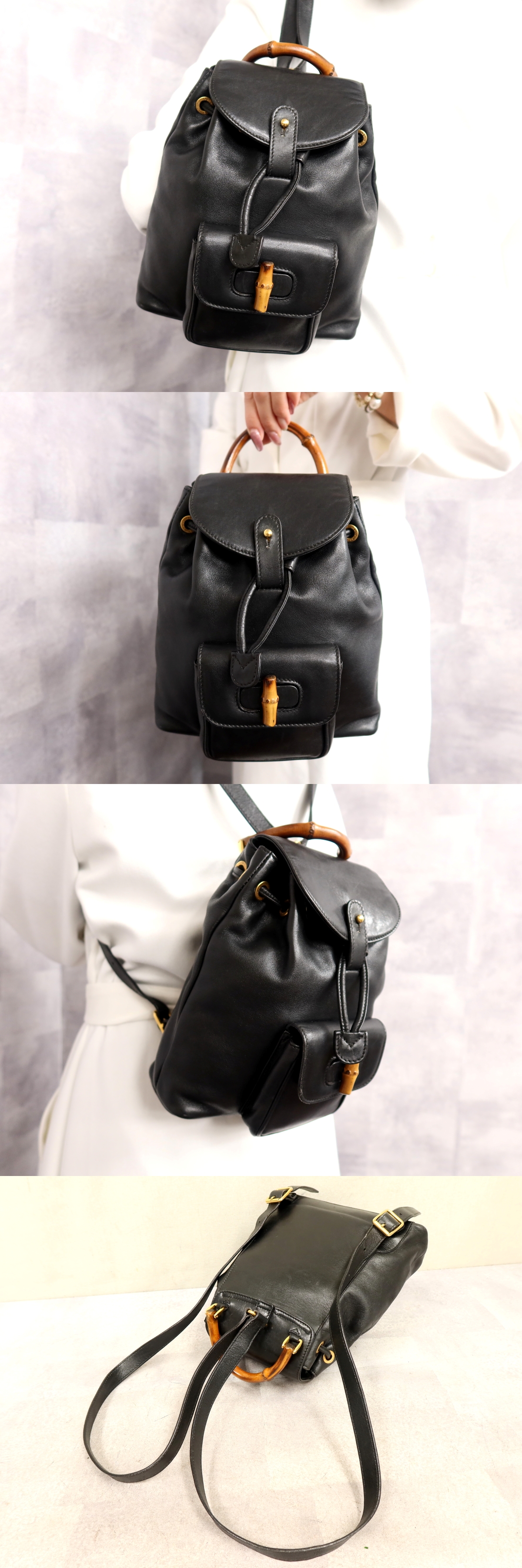 Product name: ●超美品●GUCCI グッチ●バンブー●ターンロック●カーフ レザー 本革●リュックサック●黒●ゴールド金具●イタリア製●かばん●Js61954