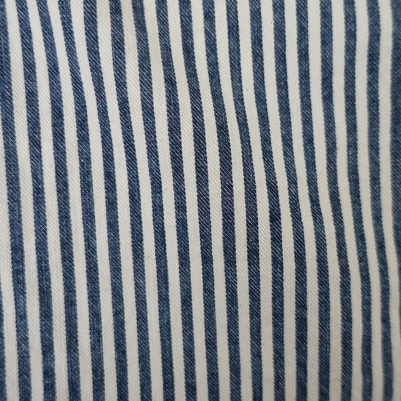 KAPITALのヒッコリーガウチョラップパンツです。カラーはインディゴネイビー×オフホワイトのヒッコリー地で、半端丈のフレアなシルエットになっております。フロントで折り込んでボタン留めのラップ風のデザインで、両サイドにシームポケットが付いております。
