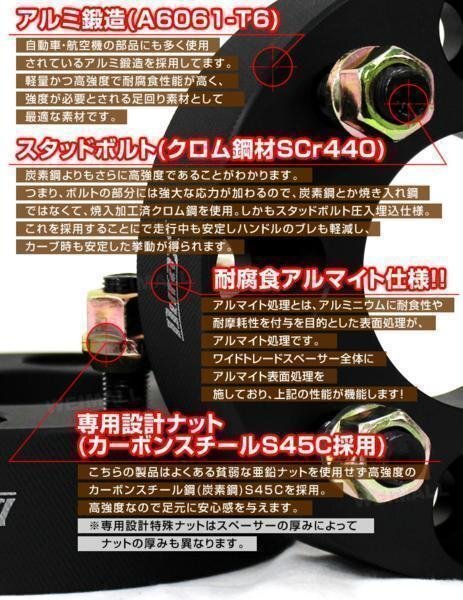 マットブラック/ワイドトレッドスペーサー/耐腐食アルマイト/専用ホイールナット付 2枚セット
