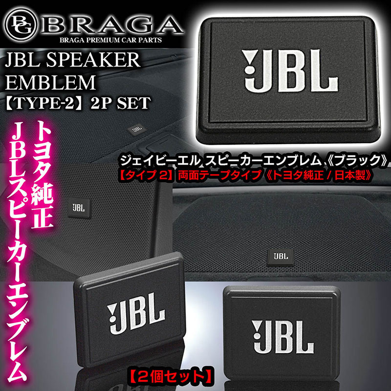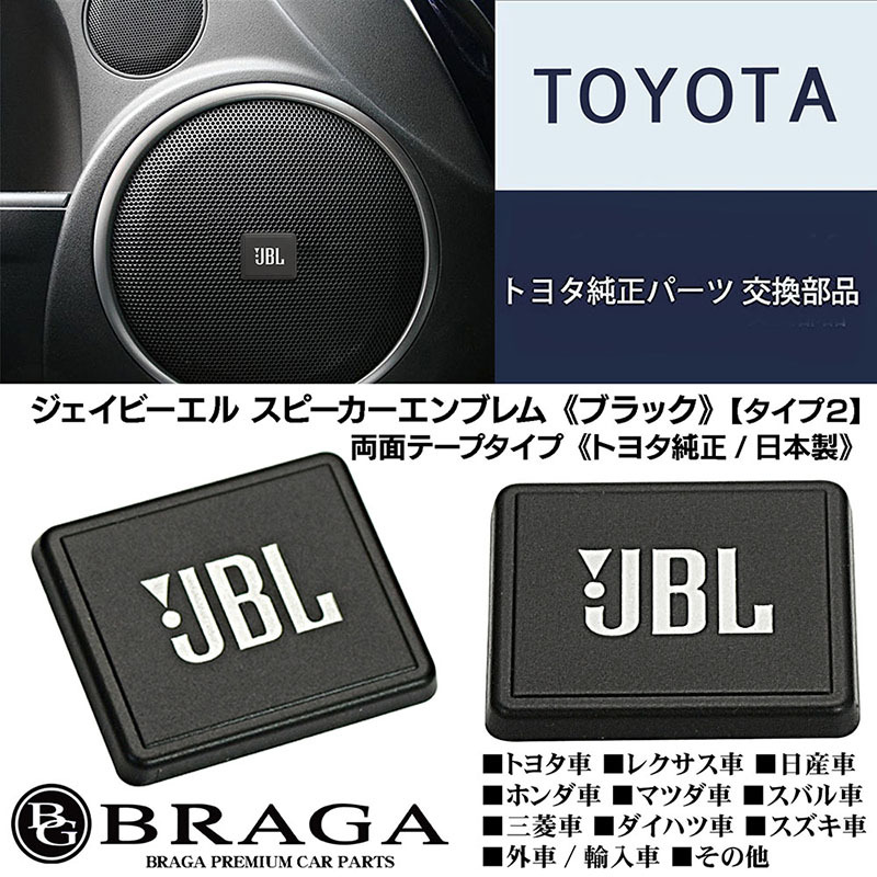 トヨタ純正《JBL/ブラック》ジェイビーエル スピーカーエンブレムプレート《タイプ2》2個セット【両面テープ止め】ABS樹脂/ブラガ