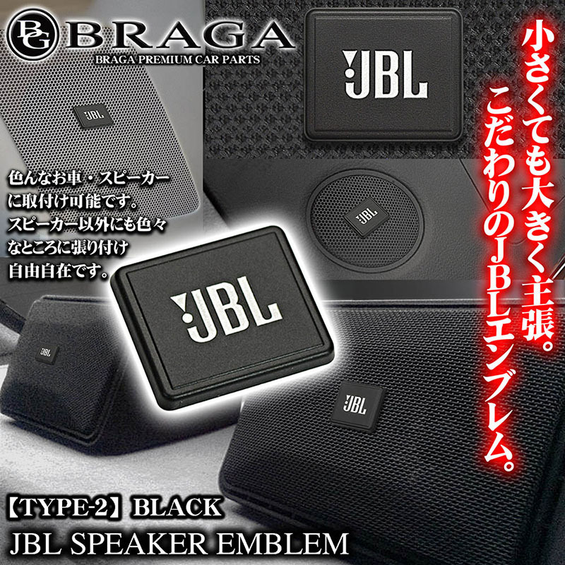 JBL 純正/タイプ2/ブラック ホワイトロゴ/スピーカーエンブレム 2個セット/両面テープ止/日本車 輸入車/ブラガ BG BRAGA