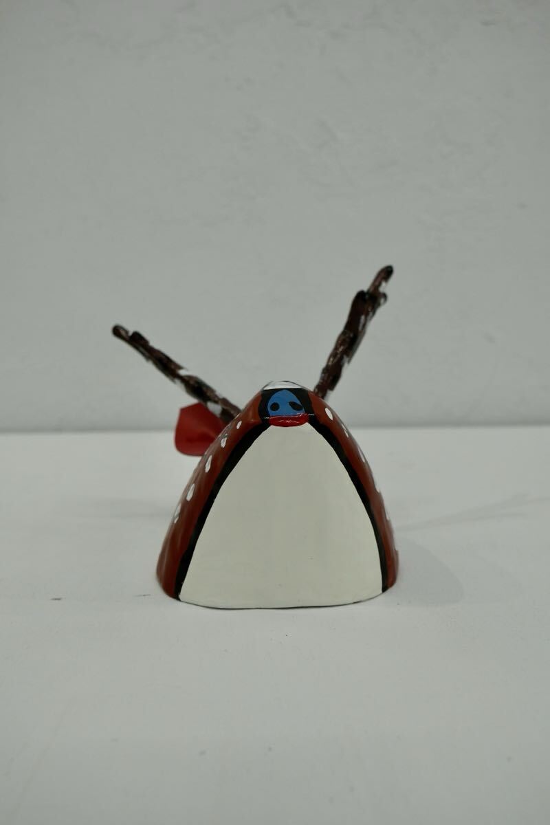 お面の部分は、愛媛の手漉き和紙である大洲和紙を重ねた張り子で、角の部分は木や藁を束ねて作られています。