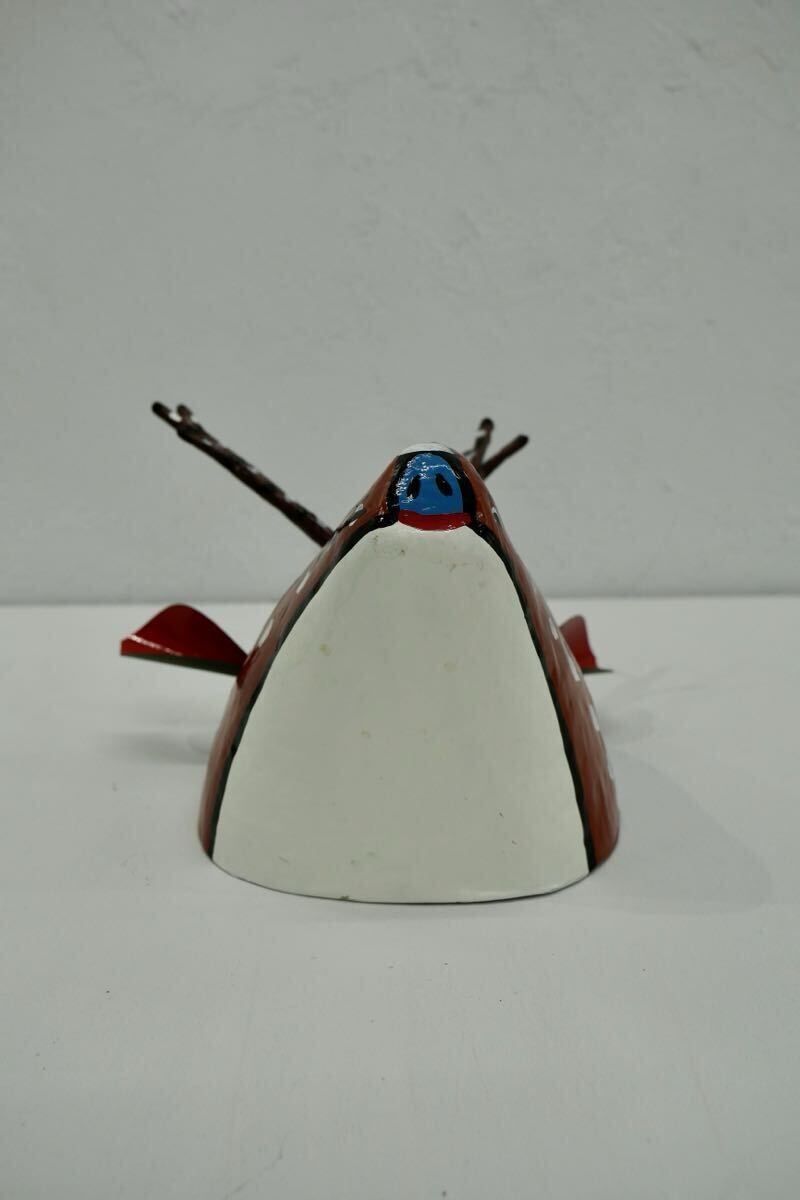 お面の部分は、愛媛の手漉き和紙である大洲和紙を重ねた張り子で、角の部分は木や藁を束ねて作られています。