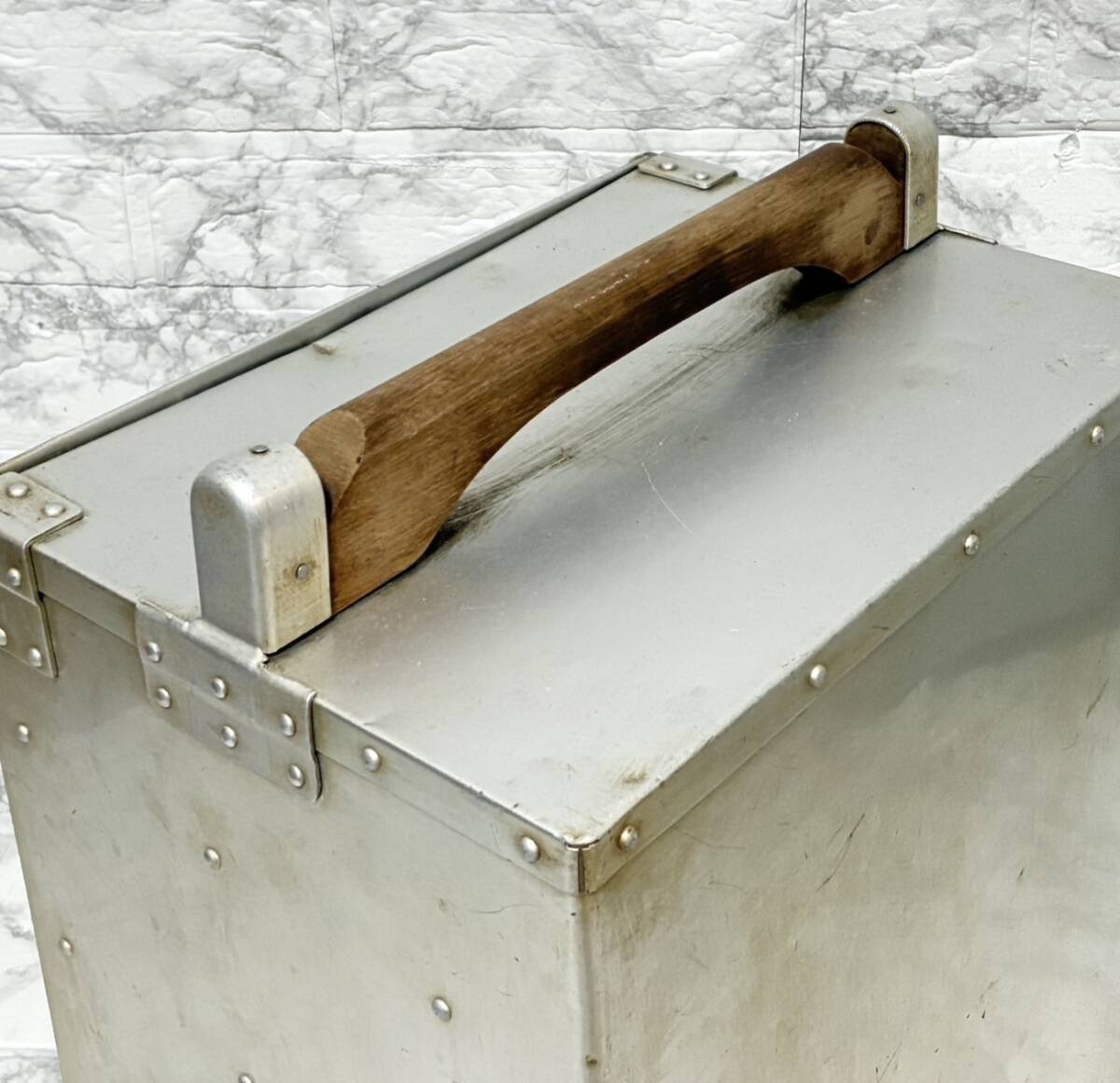 おかもち 岡持ち 出前ケース 仕切り3枚 高さ34/横32/奥行24.5 出前箱 配達箱 昭和レトロ 古道具 古箱 中古