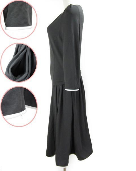 シックなグレーのフェミニンなロジーリリードレス。フィットアンドフレアーのフォクシーらしいデザインです。胸元や裾の白のパイピングが、優しい印象に。お出かけスタイルにおススメです。
