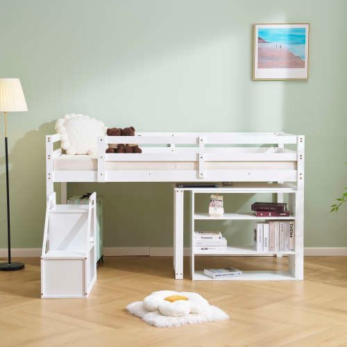 • 【抜群な機能性】①ベッドとして②学習机付きベッド下にデスクが付いたロフトベッド。小さな書斎としても使えますし、勉強後はすぐにベッドに行って休むこともできるので、時間を節約でき効率も上がる。※キャスターもつくデスクは移動可能で、利便性がアップ!学習効率を高めながら、生活の時間コストも節約できる。スリッパを収納できるだけでなく、勉強や仕事をしている時に足を置くこともできます。③収納棚付き二段ラックの収納棚が付く。コミックや教科書、辞書や、小物など邪魔にならず棚として活用できる。