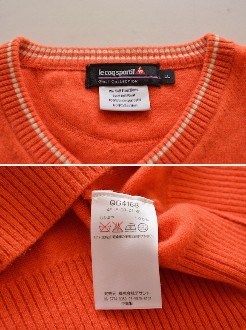 Product name: 【 ルコック スポルティフ 】カシミヤ100% Vネック セーター LLサイズ カシミヤセーター le coq sportif golf