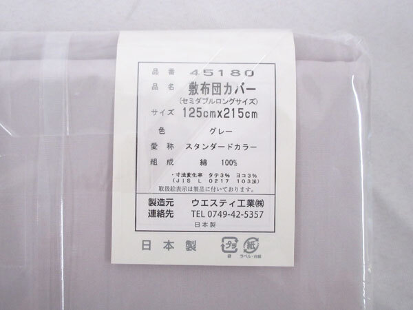 内 容 ■ウエスティ 敷布団カバー セミダブルロング グレー