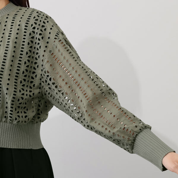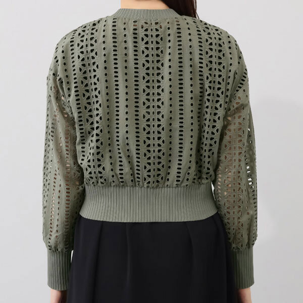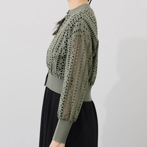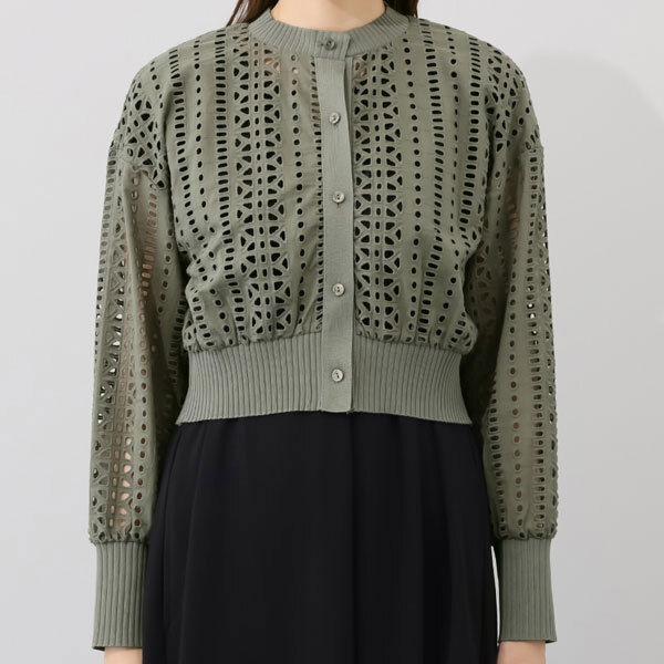 Product name: 送料300円(税込)■mb313■元町ゼラール コットン100% 総カットワークレース クロップトカーディガン M オリーブ【シンオク】