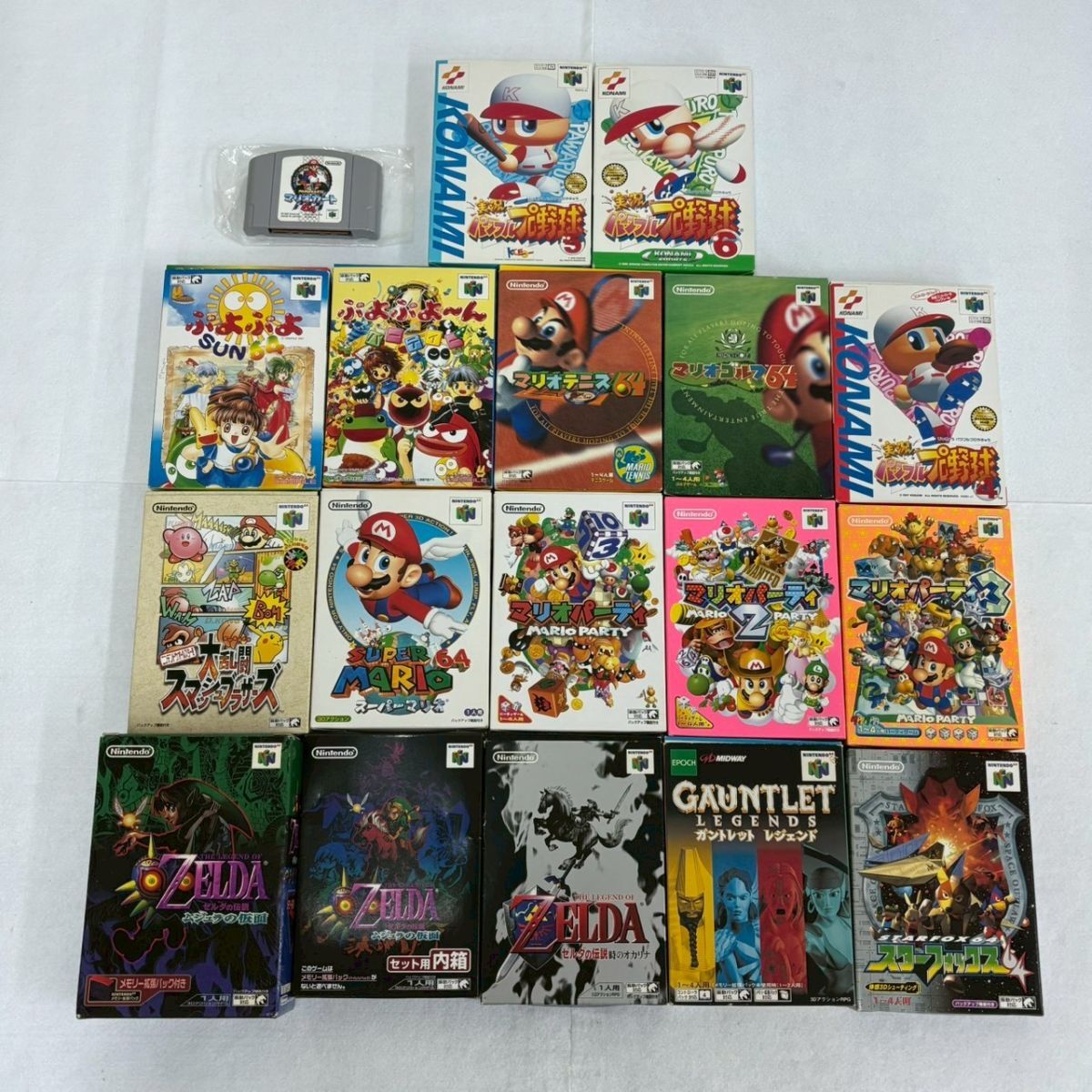 J402-O60-1445 Nintendo ニンテンドー 64 本体 NUS-001/コントローラー/専用ケース/ガントレット ゼルダ ソフト 17本付 N64 通電OK OA