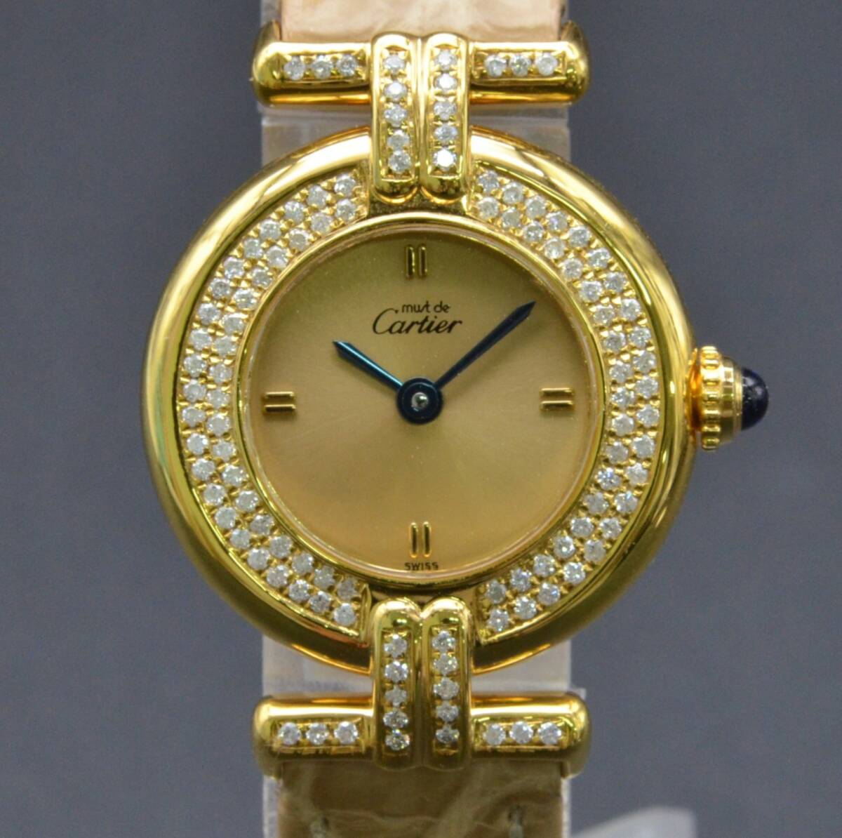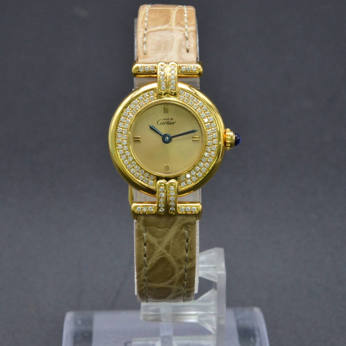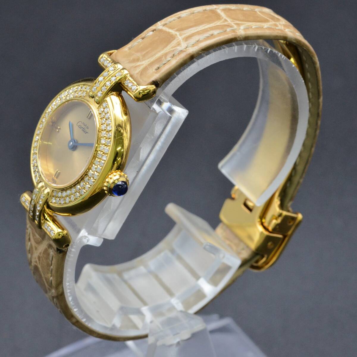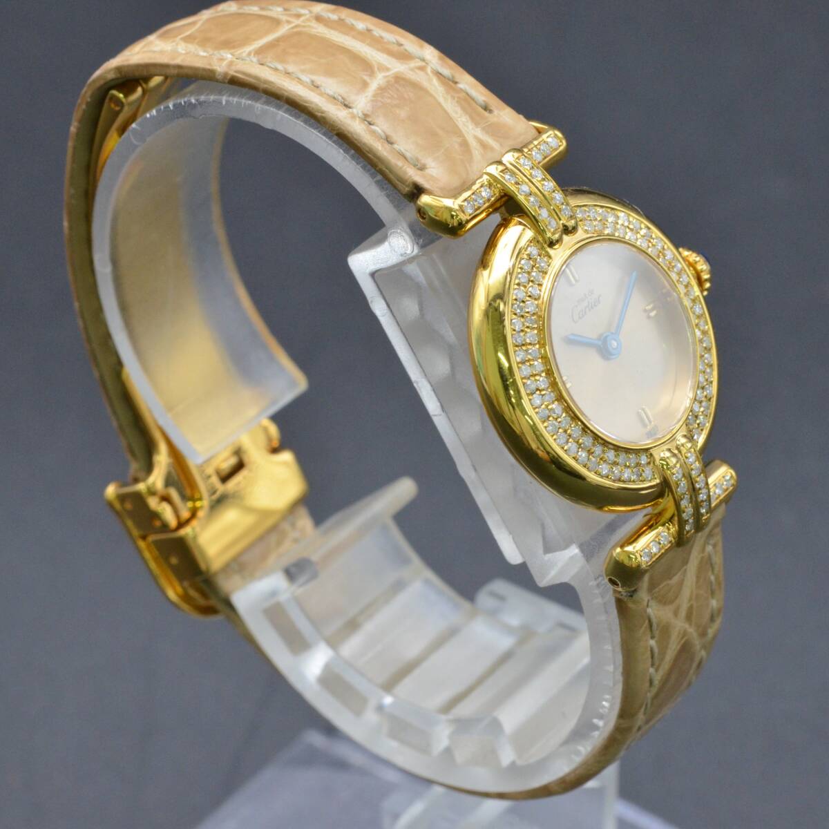 1円~稼働品256-1258968I CARTIERカルティエ マストコリゼ W1008554 QZ GP/革 ゴールド文字盤 レディース腕時計