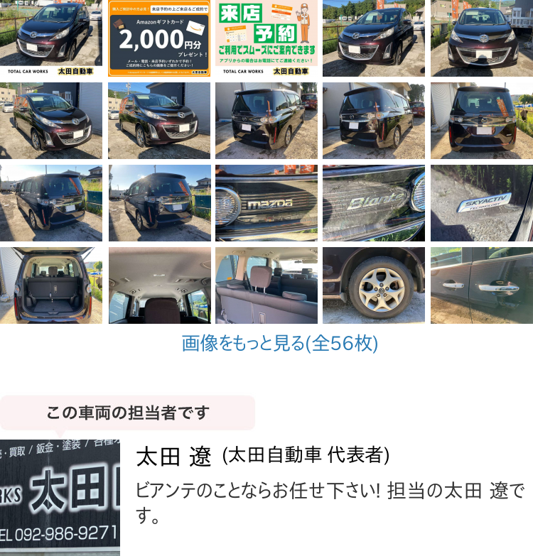 Product name: 【諸費用コミ】:■福岡■糟屋 平成25年 マツダ ビアンテ 20C スカイアクティブ メモリーナビ キーレス 両側パ