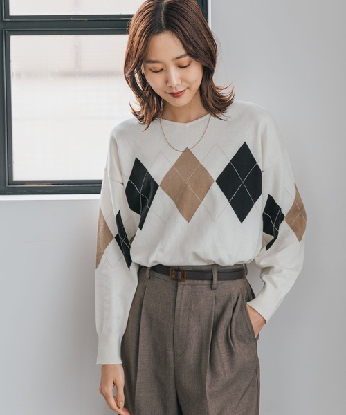 キーワード:ニット セーター レディース vネック 長袖 無地