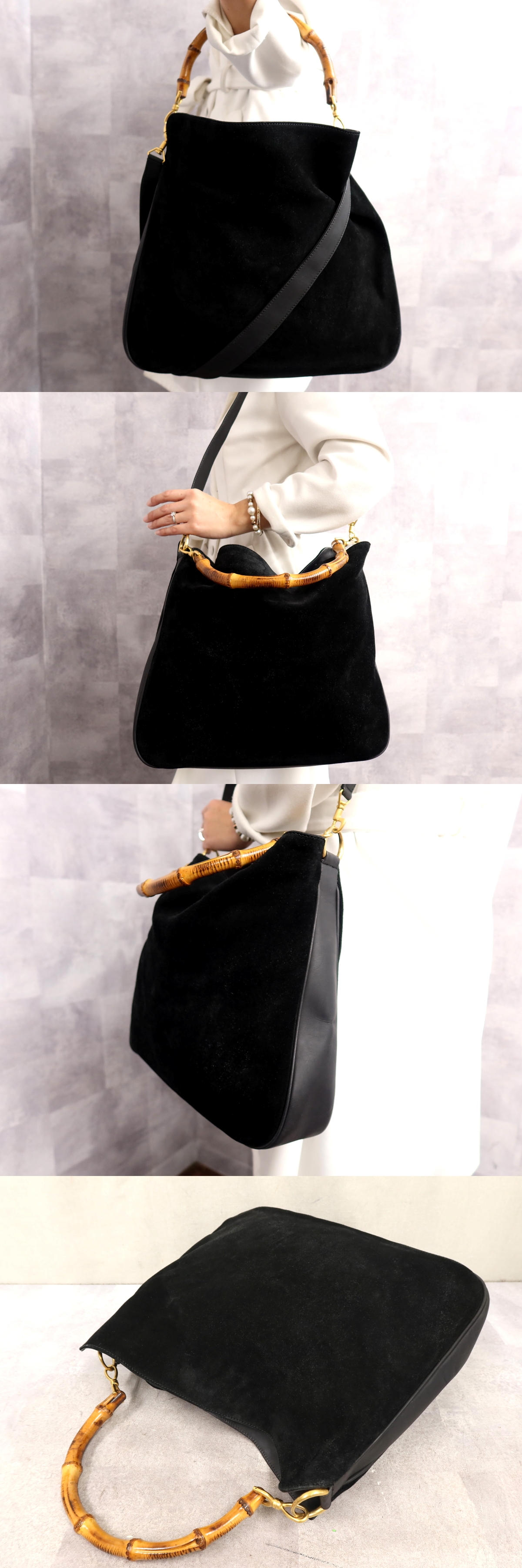 Product name: ●超美品●GUCCI グッチ●バンブー●スエード カーフ レザー 本革●2way ハンド バッグ●黒●ゴールド金具●イタリア製●A4 収納●Js64610