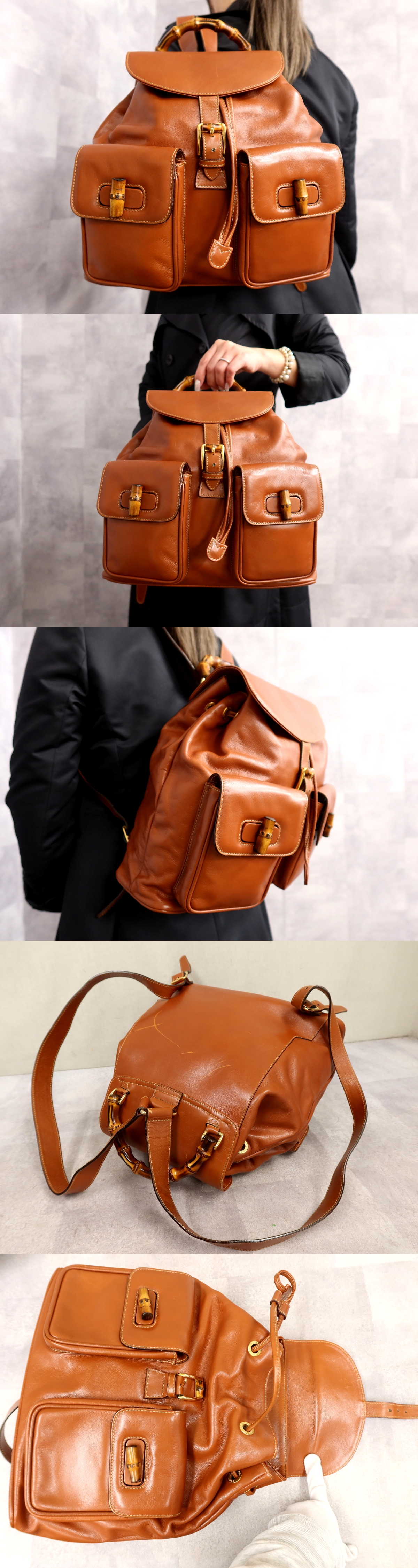 Store ●超美品●GUCCI オールド グッチ●バンブー●カーフ レザー 本革●リュックサック●ブラウン●G金具●イタリア製●ヴィンテージ●Js66010
