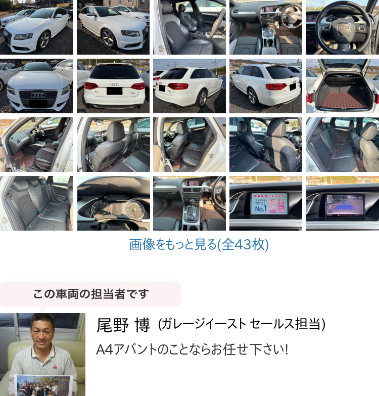 Product name: 岐阜県 おすすめ中古車 輸入車 2011年 アウディ A4アバント 2.0 TFSI バックカメラ ETC パワーシート