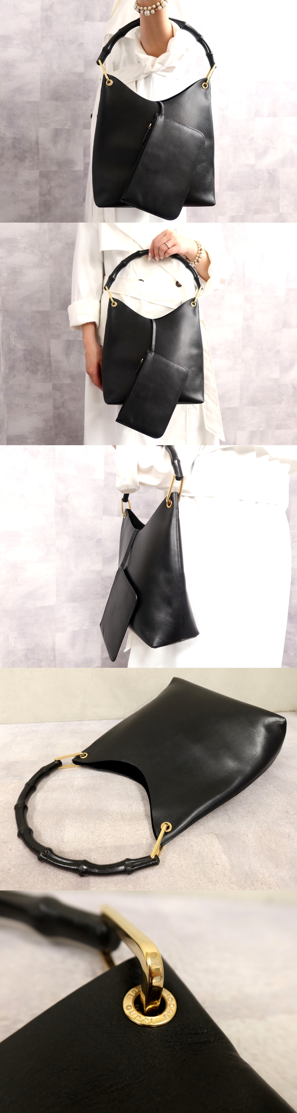 Product name: ●超美品●GUCCI グッチ●バンブー●カーフ レザー 本革●ハンド バッグ●黒●ゴールド金具●イタリア製●腕掛け●かばん●Js66982