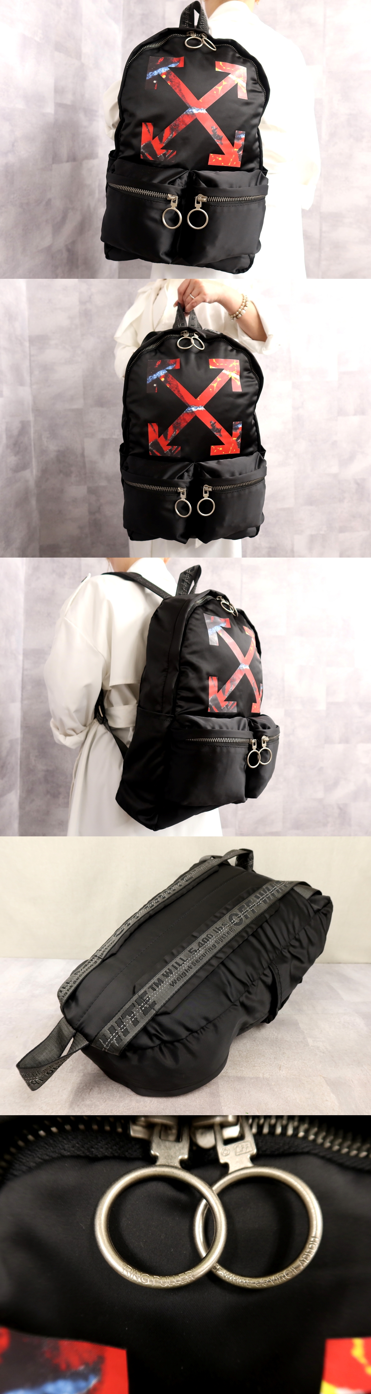 Store ●超美品●Off-White オフホワイト●ダブルポケット●ナイロン●リュックサック バックパック●黒●A4 収納●書類 かばん●Js67196
