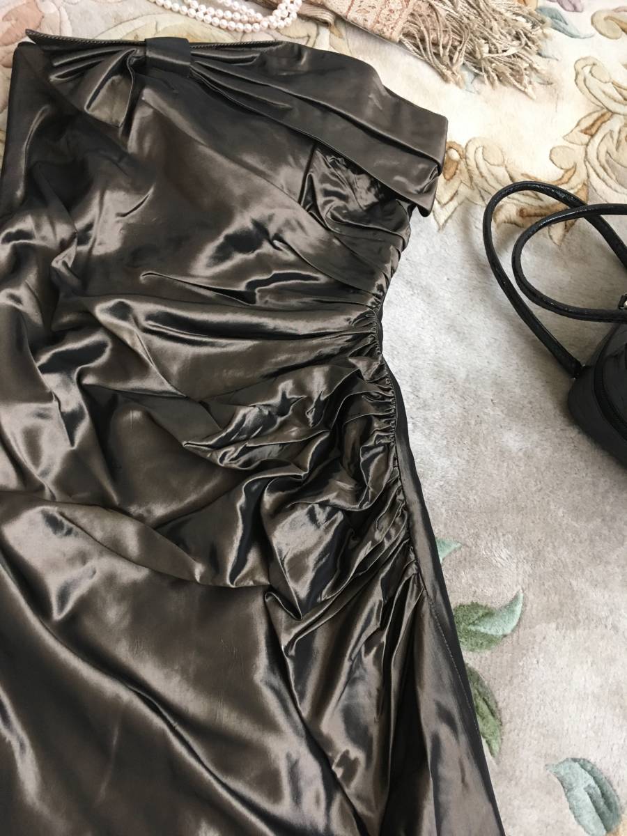 ロンドンのナイツブリッジにあるセレブ御用達百貨店ハーヴェイニコルズで購入したフレンチデザイナー Claudine Elbaz のロングドレス、日本円で20数万円と記憶しております。サイズは38ですが、購入時お直しはいっております。実寸は、胸から下の丈124cm、胸囲幅38cm(膨らみございますので着用するともう少し余裕がございます。)
