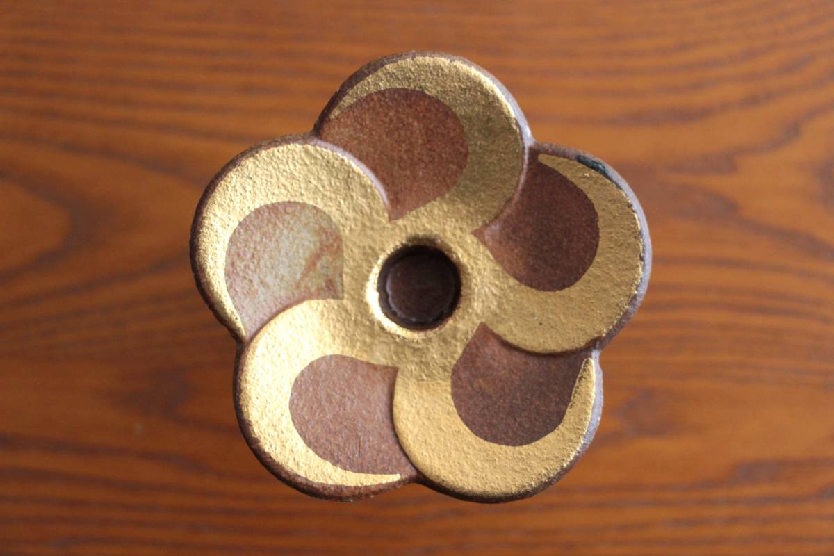 70年代に生産された花のキャンドルスタンド。ゴールド色で花びらがデザインされています。