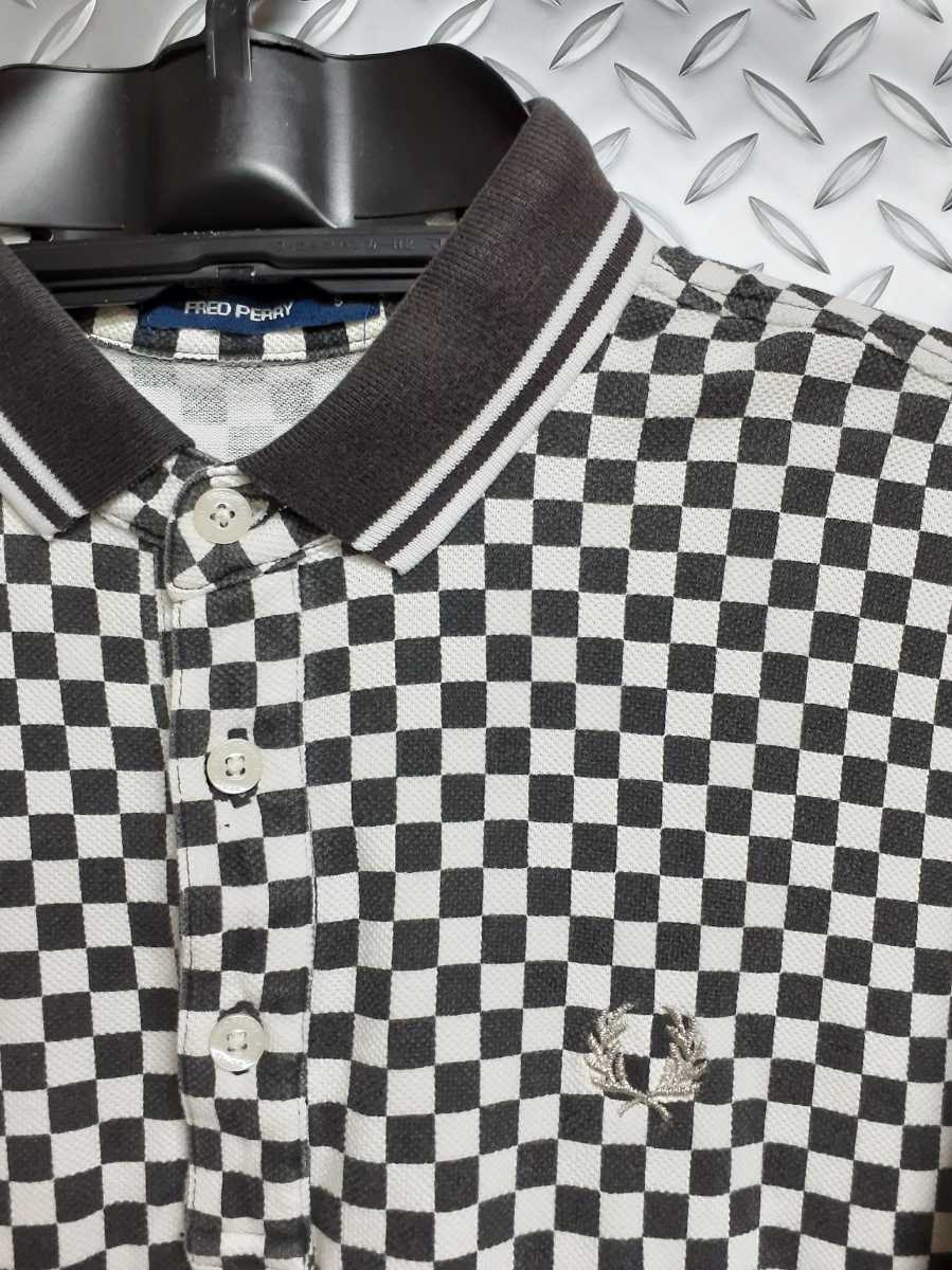 スカパンクモッズスタイルFRED PERRY白黒チェッカーデザインポロシャツ