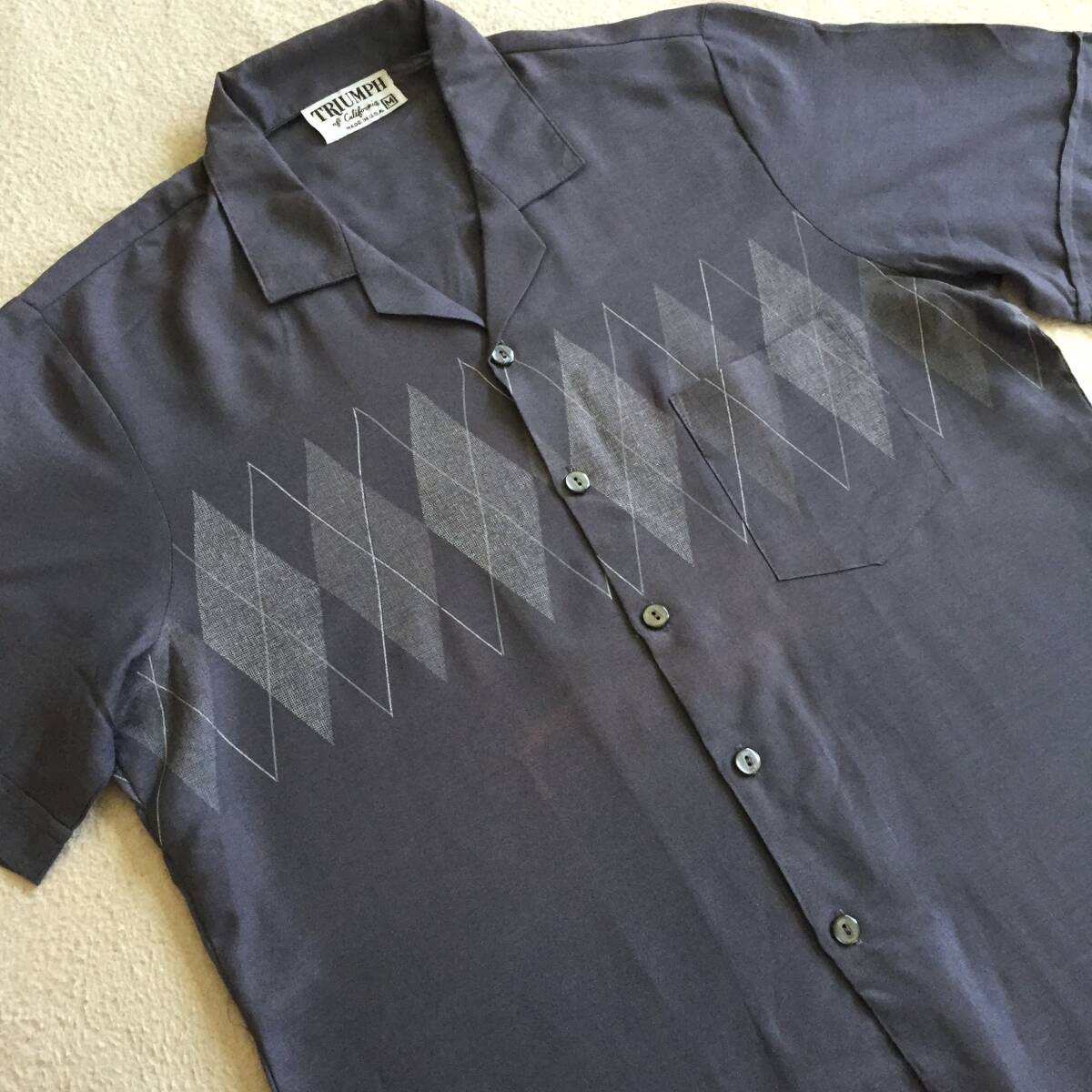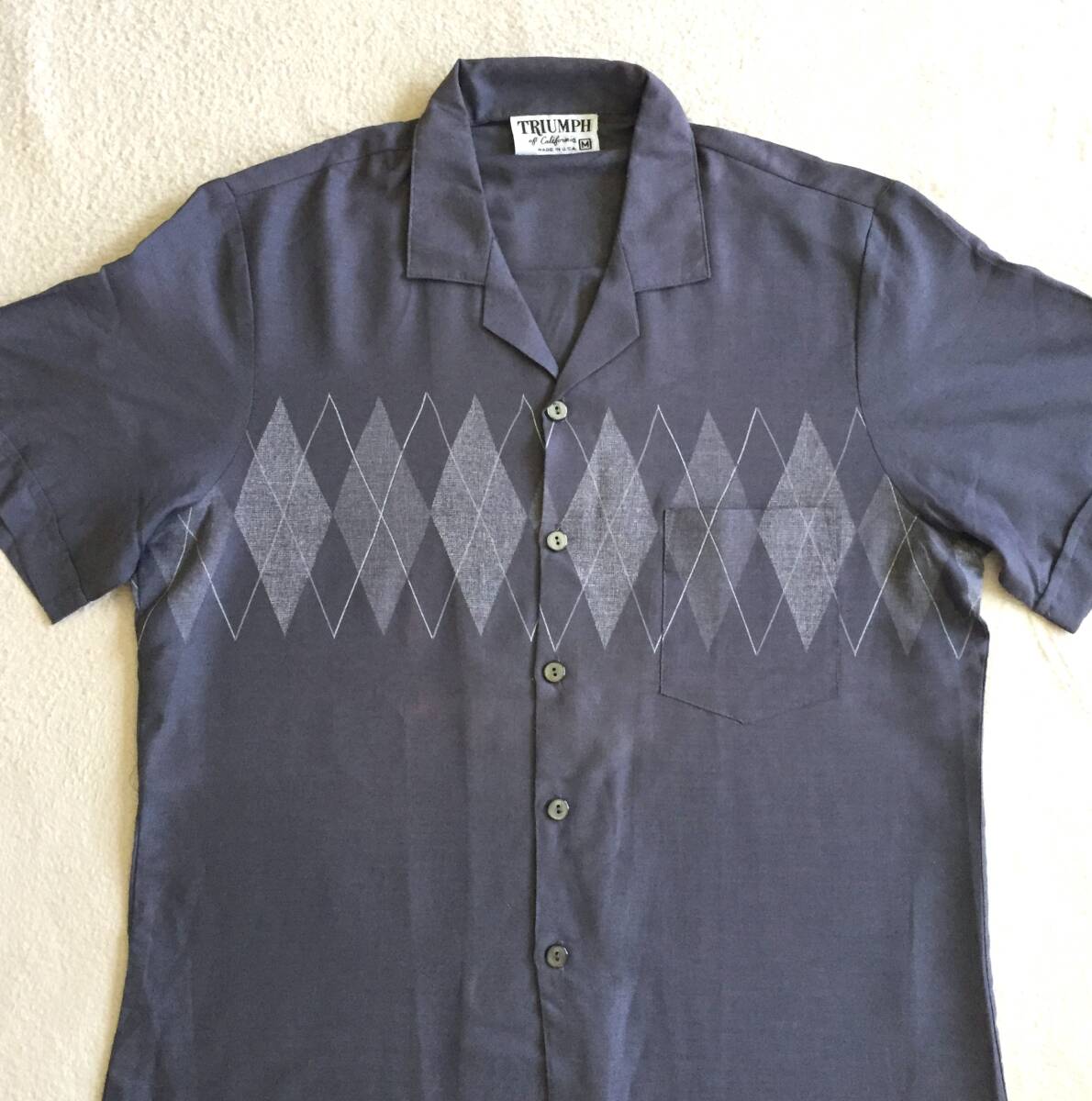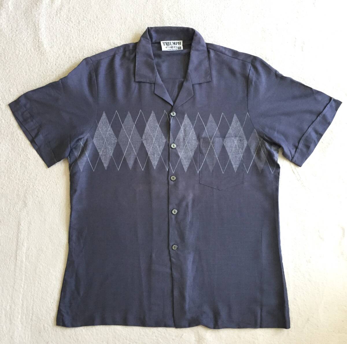◆ビンテージ Triumph of california アーガイル柄 シャツ USA製 ダイヤ柄 レーヨントライアンフ ロカビリー 検 50S