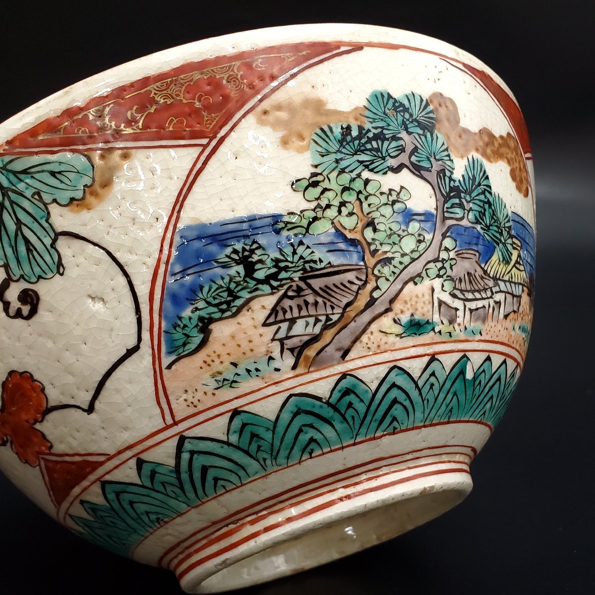 Product name: 【宝蔵】九谷焼 大日本九谷造 庄三 金彩赤絵 割取花鳥農耕図鉢 盛鉢 22㎝ 色絵 時代物