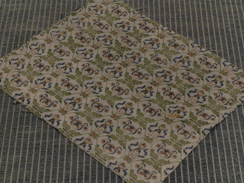 画像のとおり、アンティークなりのうっすらとしたくすみと若干の褪色が全体的にあるほか、端部の四辺にこまかな縫い跡があり、端部と中とで若干の色差があります。そのほかに目につく大きなしみやよごれ、褪色、穴などのダメージはなく、この時代のものとしては、きれいな状態です。生地の力もあります。※風楽の出品内で同じ柄のものを複数出品している場合もあります。