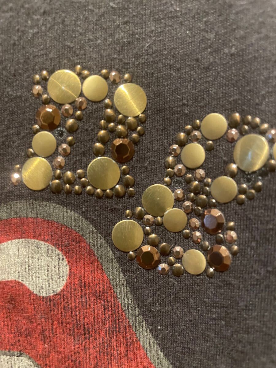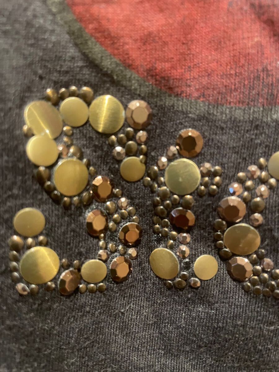 メタルパーツでネームを入れた装飾が施されたロックT