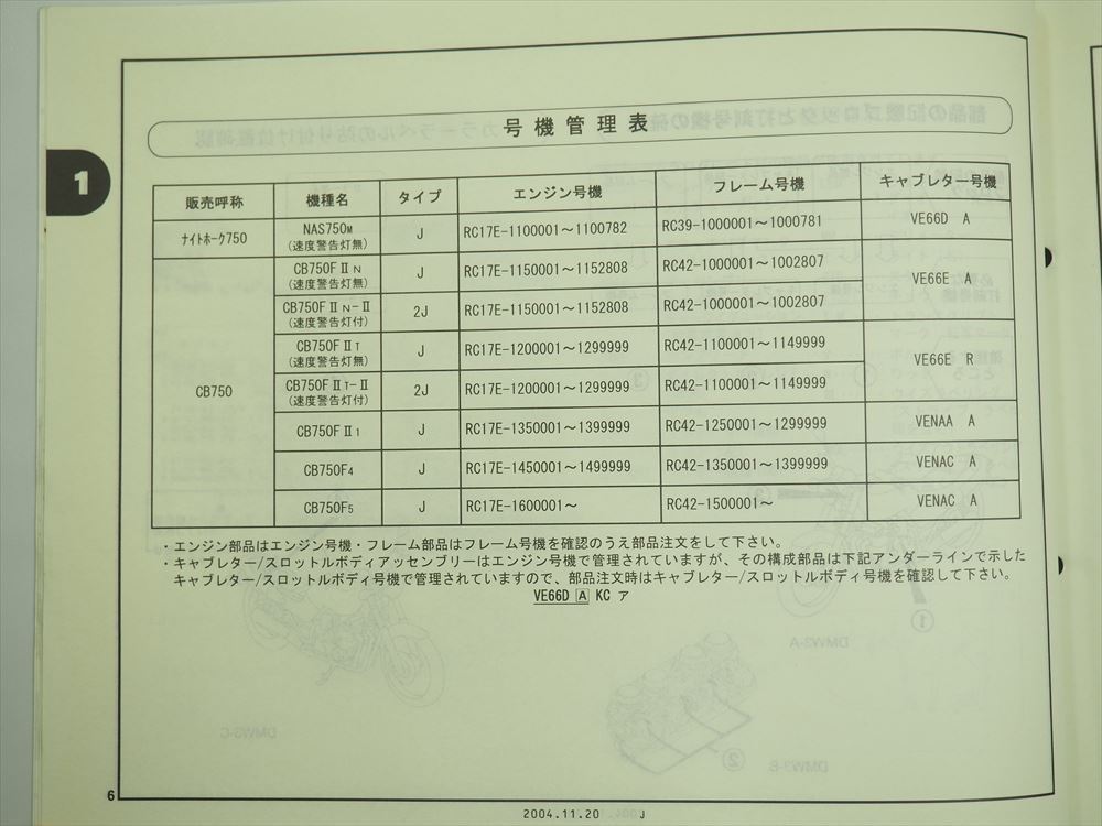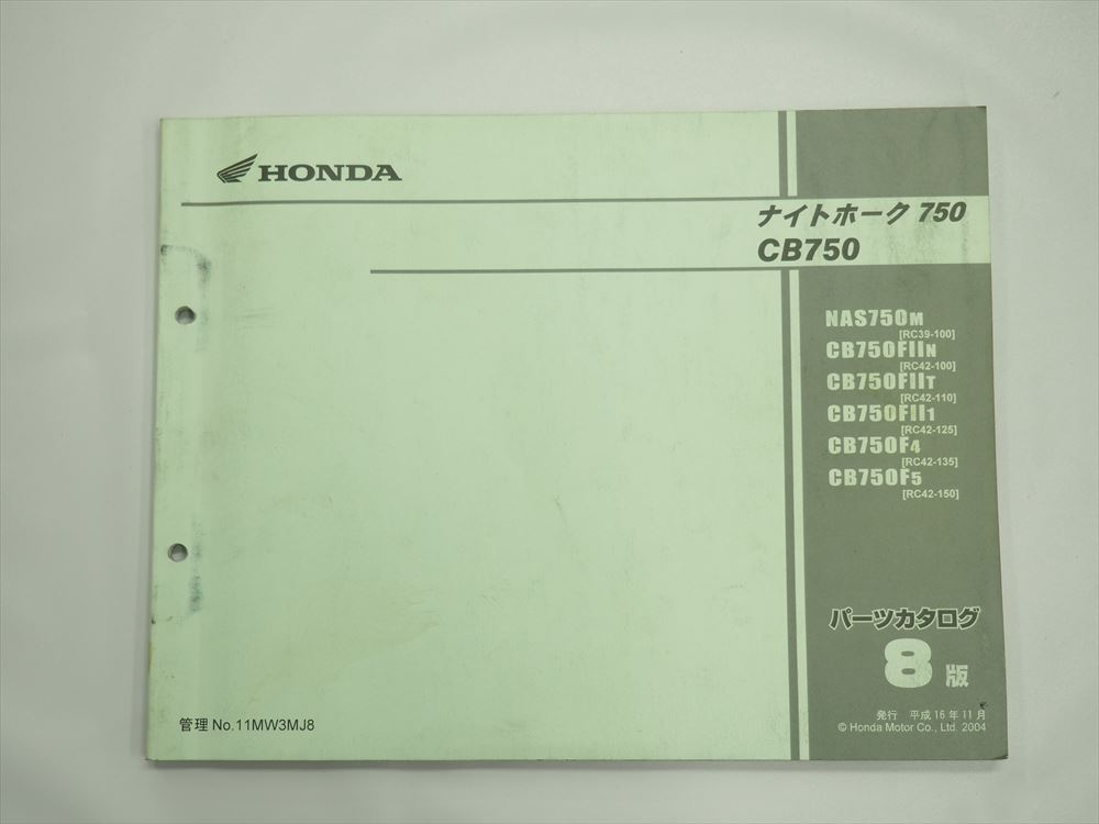 ナイトホーク750 CB750 RC39-100 RC42-100/110/125/135/150 パーツリスト 8版 NAS750M 平成16年11月発行