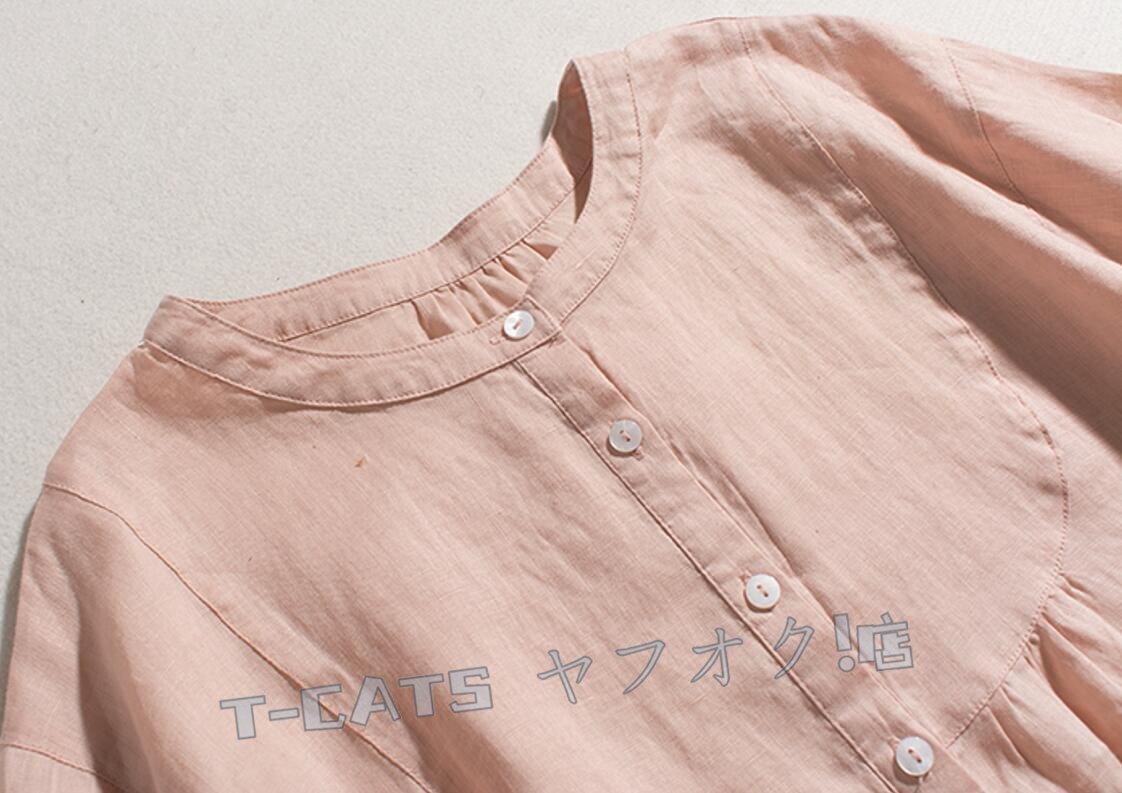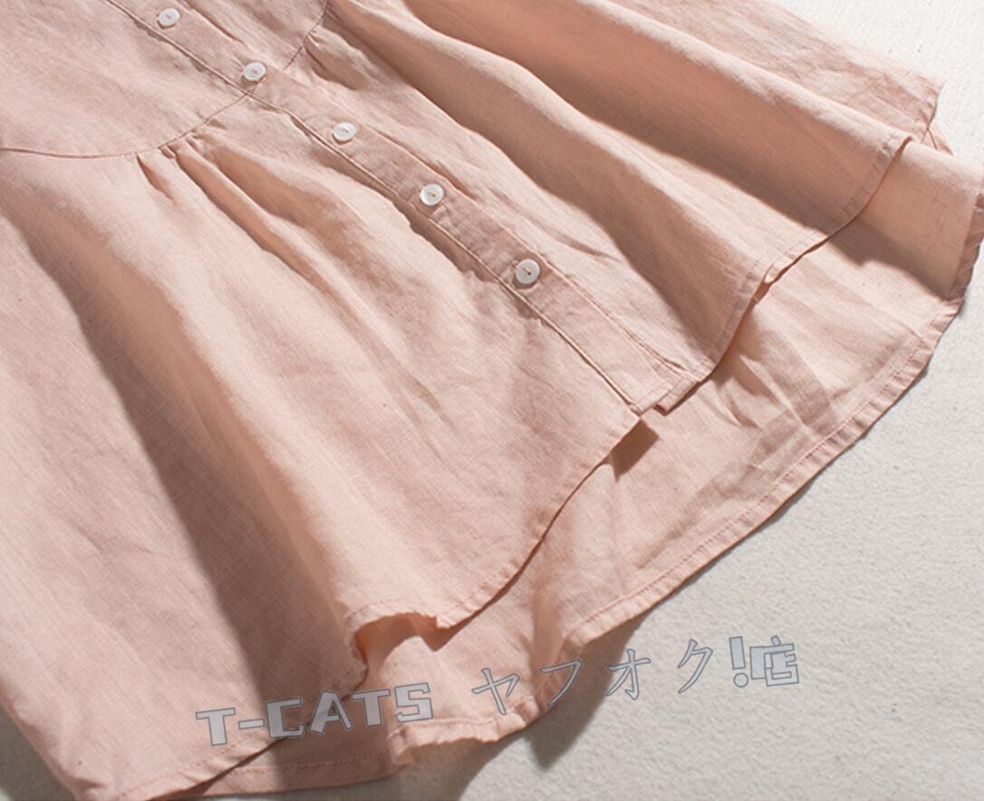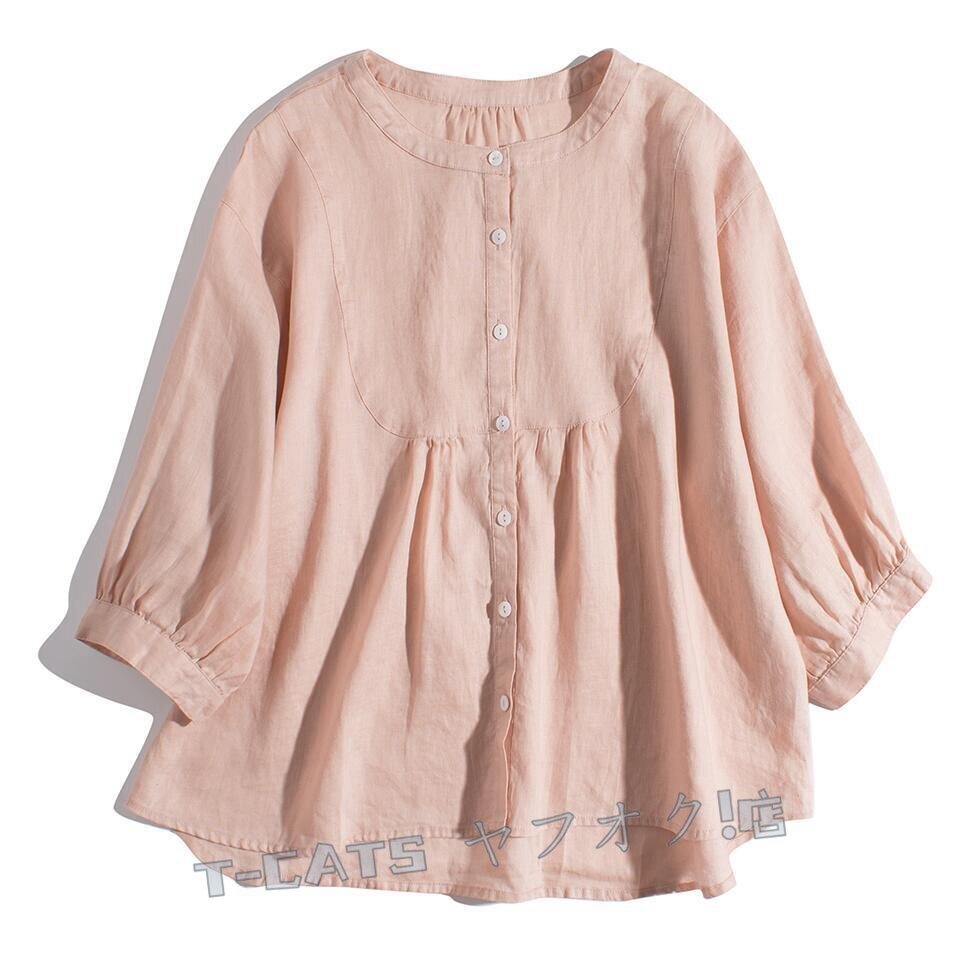 ☆新品チュニック シャツ ブラウス きれいめ ナチュラル 着痩せ ゆったり 大きいサイズ 無地 涼しい トップス 七分袖 ブラウス ブルー