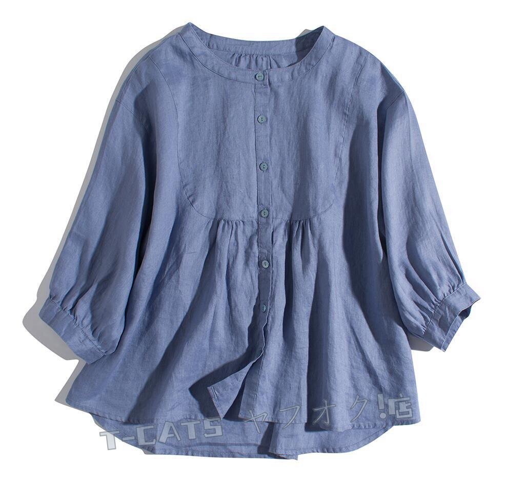 Product name: ☆新品チュニック シャツ ブラウス きれいめ ナチュラル 着痩せ ゆったり 大きいサイズ 無地 涼しい トップス 七分袖 ブラウス ブルー