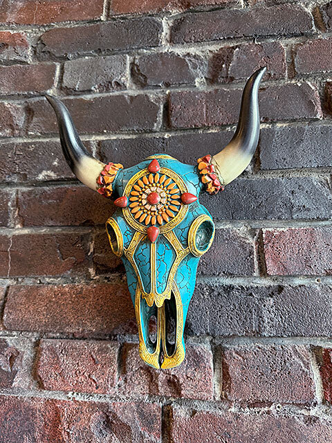 Product name: ターコイズ & オレンジストーン カウスカル ウォールオブジェ ウエスタン 壁飾り ■ アメリカン雑貨 アメリカ雑貨
