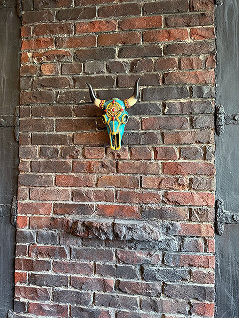 その貴重なバッファロースカルを、ポリレジンでリアルに再現したウォールオブジェがこちら!