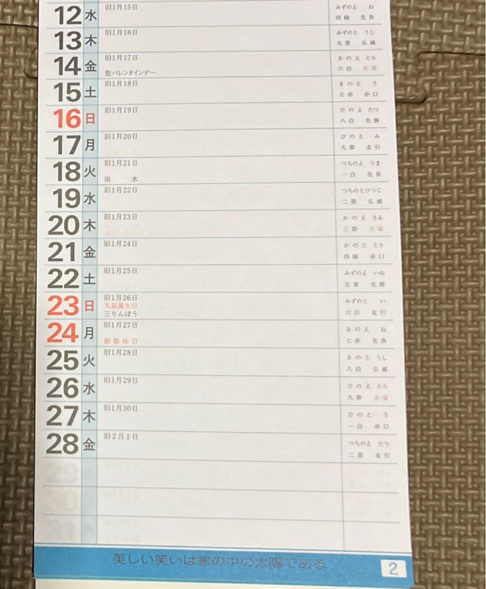六曜・旧暦 ・干支・九星・メモ欄有(写真参照)