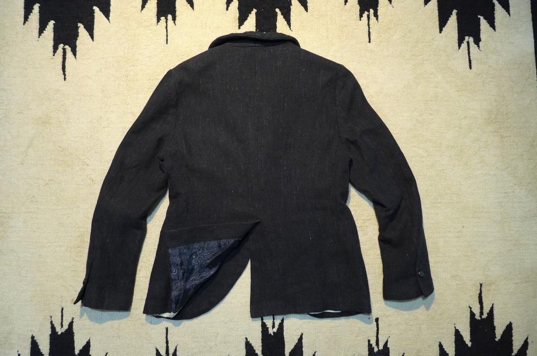<以下、商品説明より引用>  ディテールは、ナローなショールカラーや、ロースタンスのボタン位置、テーラーが持つデザインの可能性というコンセプトで、独自にデザインされたボタンクロージャーのフラップ付きサークルウエルトポケットが特徴として挙げられます。   素材に関しては、ヴェネト州のサルセドという街で150年以上ファミリービジネスを続けてきたルイージ・パリソット社が手がけたジェフリーのオリジナル素材であるリネン/ コットン/ウール素材を使用しており、ライニングには、テッシトゥーラ・マウリ社のジャカードヴィスコースとコモ産のフローラルプリントコットンを、袖裏にはベンベルグ社のキュプラを使用しております。   ボタンに関しては、パルマのクラウディオ・シンチア・フォンタナ社のホーンボタンを使用しており、すべてのボタンホールはミラノのボッゾーロ・レアル社のシルク糸を使用しております。   手作業による製品洗いにて最終の仕上げを行っております。