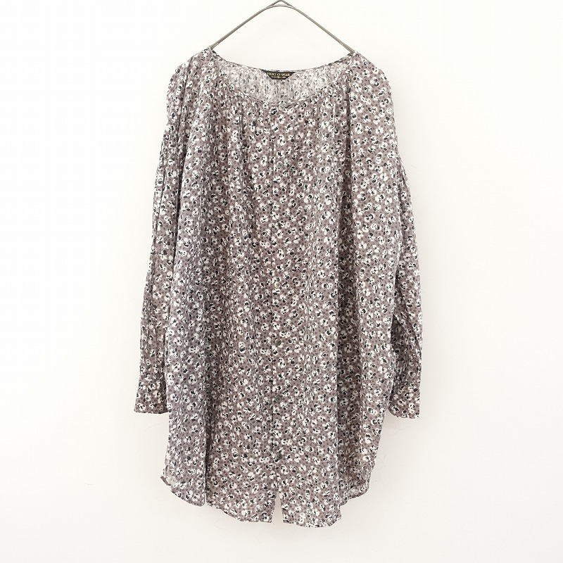 Product name: ハグオーワー Hug O War *フラワープリントギャザーオーバーブラウス*コットン総柄ノーカラー前開きワイド(2-2412-119)【20A52】