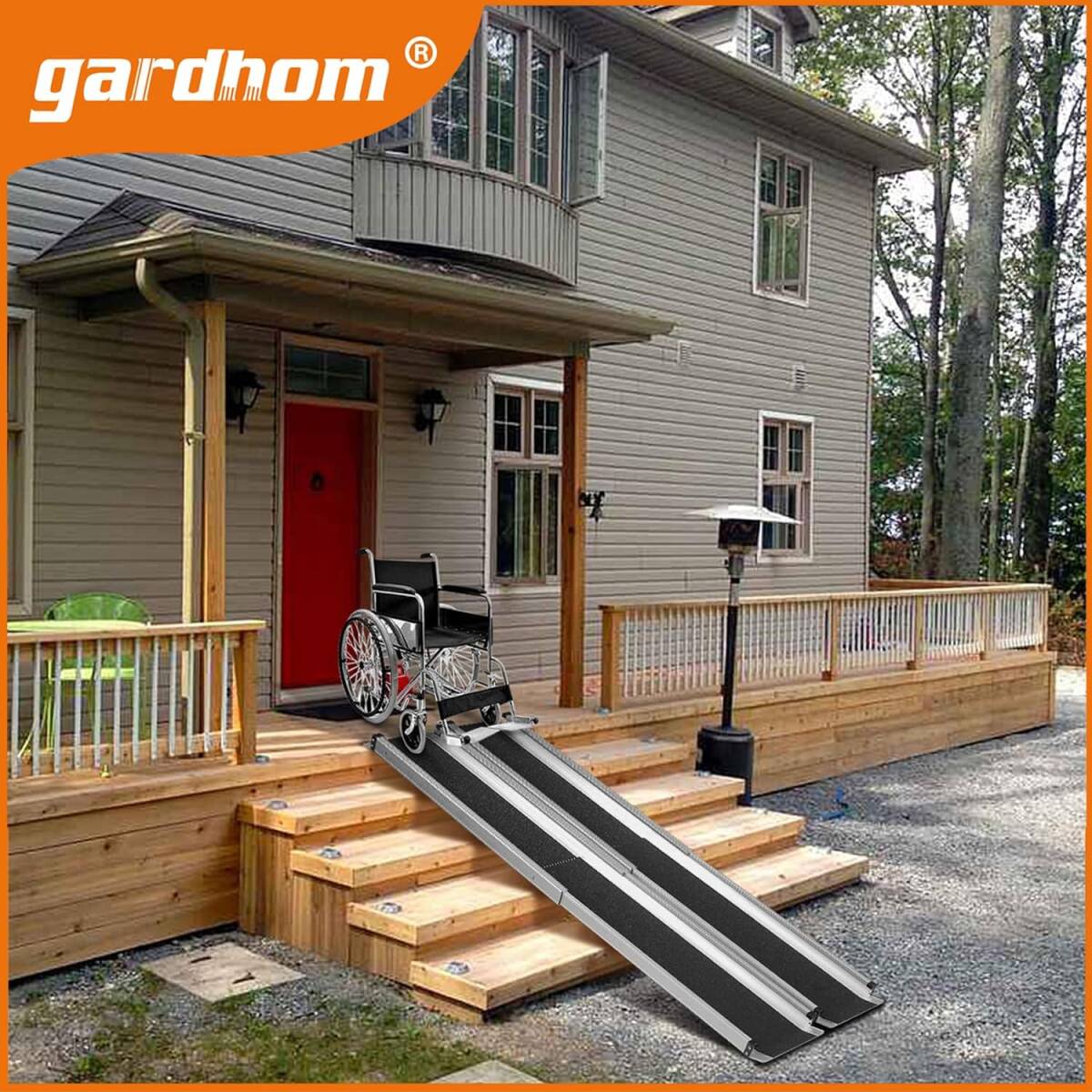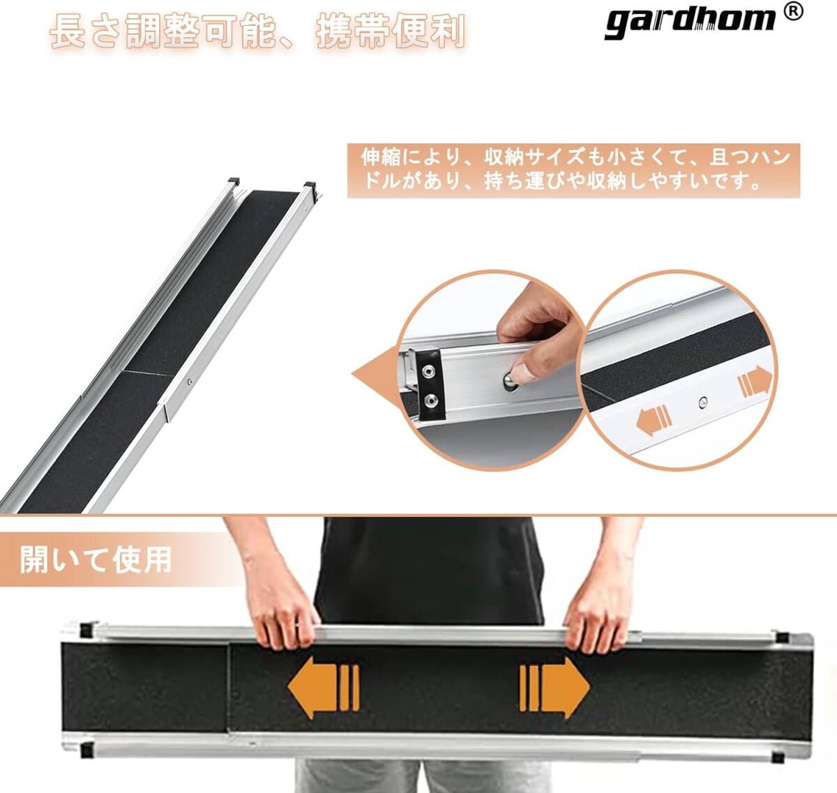 Product name: gardhom スライド式スロープ 120-213CM 車椅子用 伸縮調節可能 荷重272KG、玄関・階段・段差解消55CM、滑り止め付き 2本セット