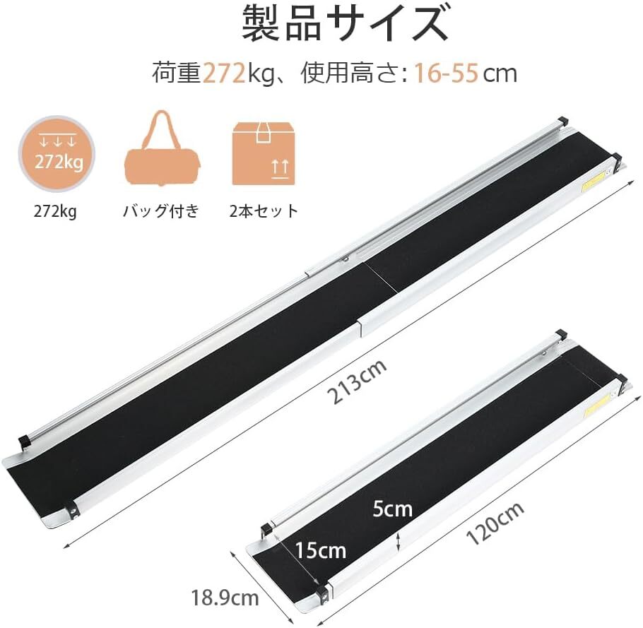 アルミスロープ2段階調節可能、調整可能な長さ120〜213cm。