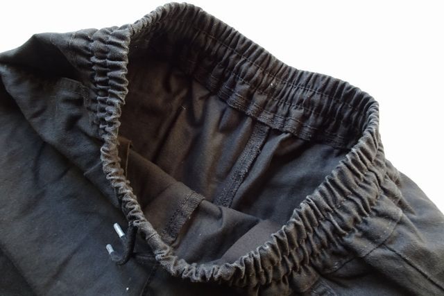 ウエストは総ゴム仕様にし、ねじれ防止のためにステッチでゴムを固定しました。