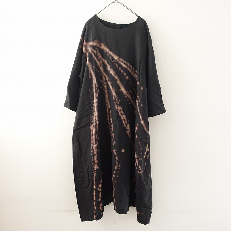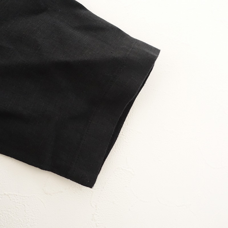 2022年春夏コレクション pas de calaisのフレンチリネンキャンバスワッシャーワンピースです。カラーはブラック・ブラウン系、薄手素材で、背ドロップホール上のループボタンで着脱できます。前両腰にポケットがあり、インナーのノースリーブワンピース付きで、定価(メーカー希望小売価格)は62,700円です。