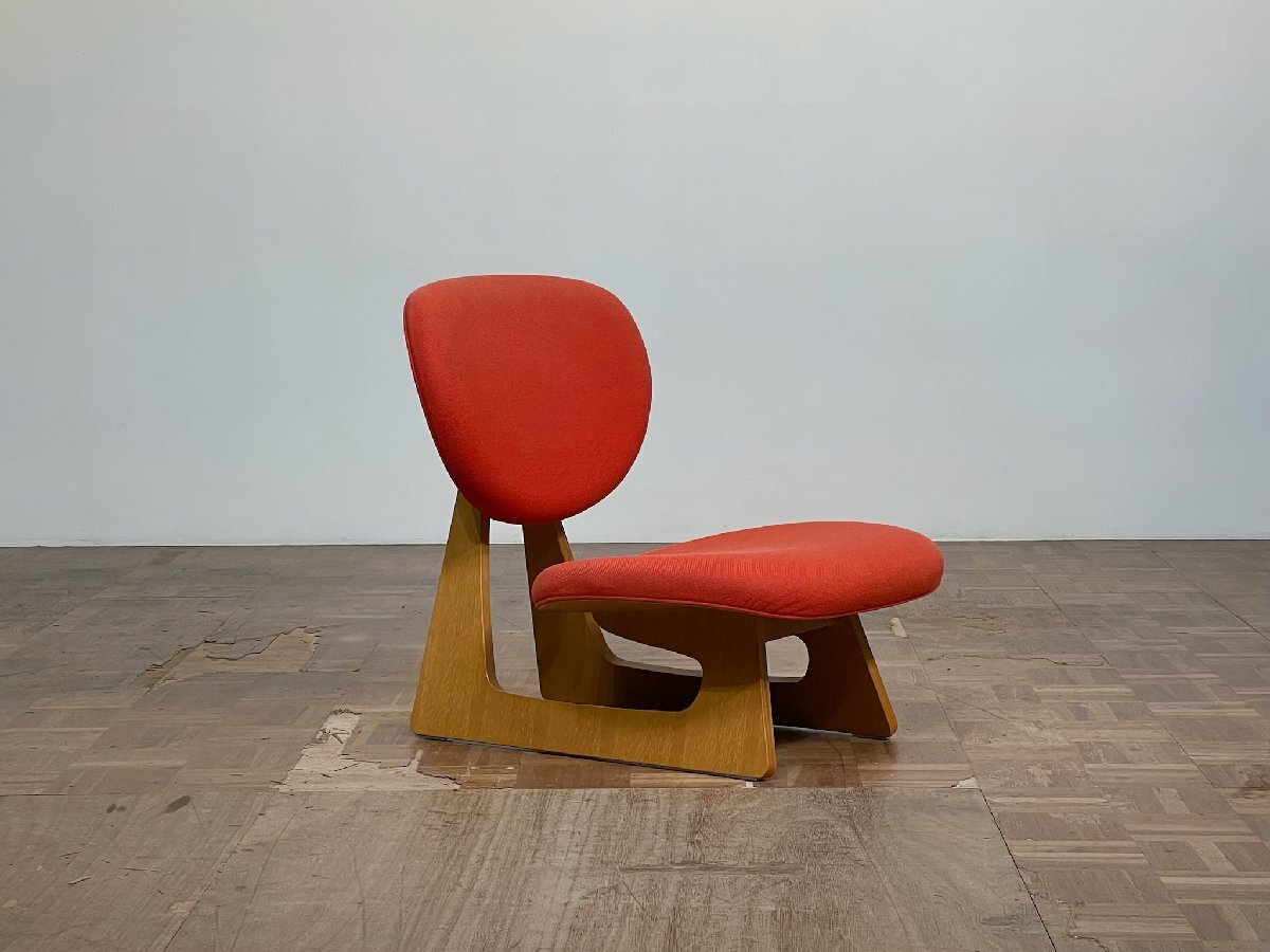 世界に誇るTENDOの成形合板技術を駆使し、ジャパンミッドセンチュリー期の伝説的デザイナー・Cho Daisaku / 長大作の生み出した世界ヒッターとして君臨する名作ローシートラウンジチェア。天童木工より。ミッドセンチュリーオレンジカバーリング仕様品のご提案