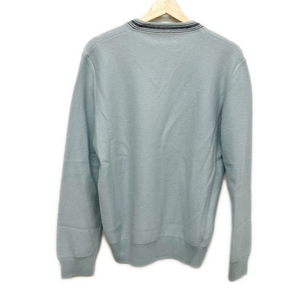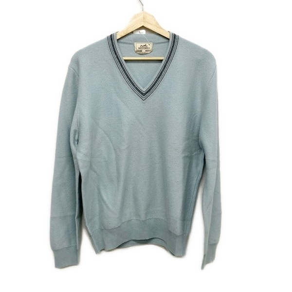 Product name: エルメス HERMES 長袖セーター/ニット サイズL - ブルー×ネイビー×ブラウン カシミア/Vネック/長袖/秋/冬 トップス