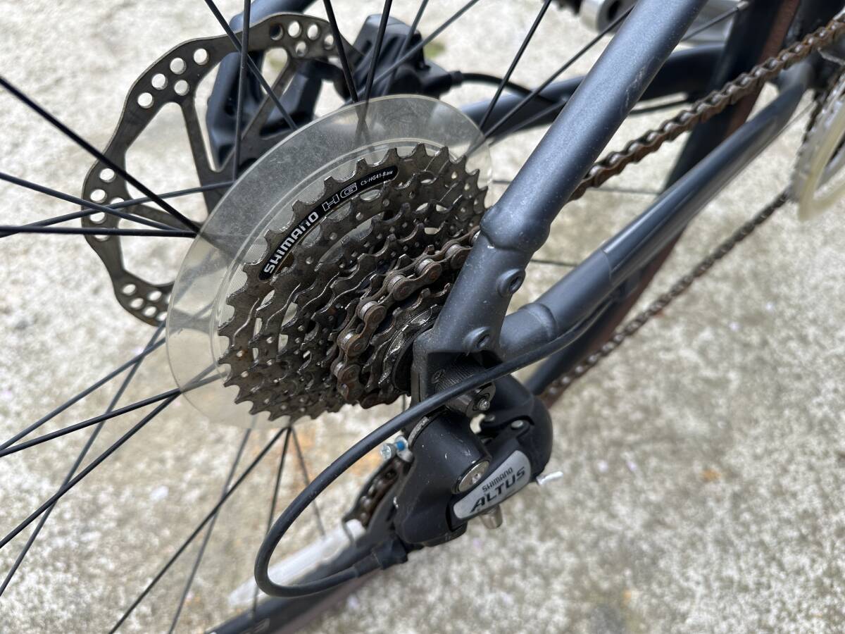 リブになりますので女性に最適なジオメトリーとシートになり快適です、油圧ブレーキは別物で雨でもすごく効きます、通勤に使用していたのでキズなどあります、